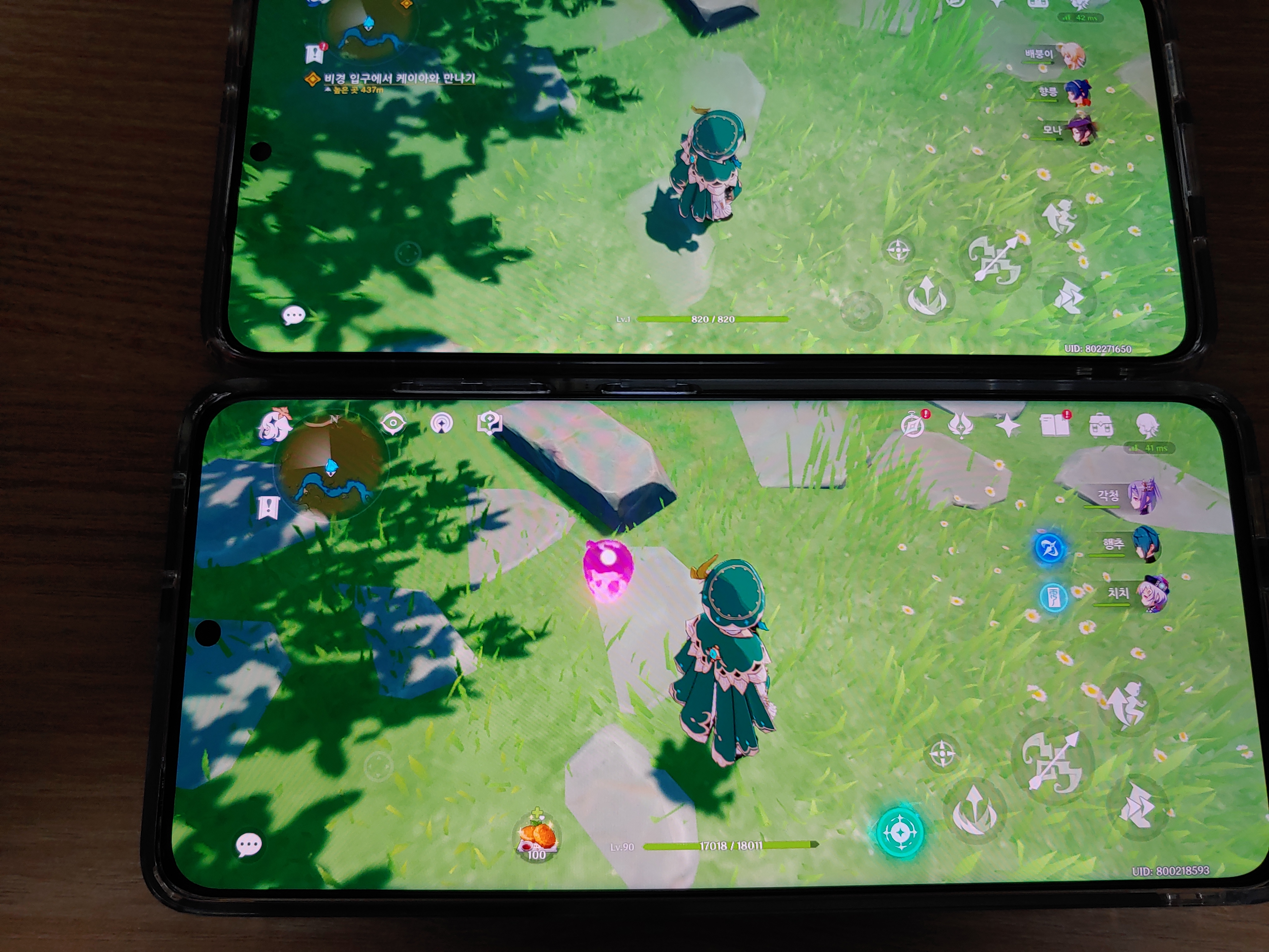 그렇다 치더라도 차이가 심합니다. S21U 쪽이 그래픽이 깔끔하지 않은 게 느껴집니다.
